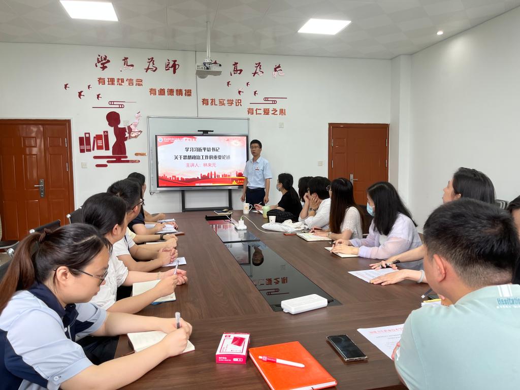 根據(jù)學(xué)習(xí)貫徹習(xí)近平新時(shí)代中國特色社會(huì)主義思想主題教育工作安排,6月15日上午,護(hù)理學(xué)院黨總支副書記林來元以《學(xué)習(xí)習(xí)近平總書記關(guān)于思想政治工作的重要論述》為題,為護(hù)理學(xué)院全體政工隊(duì)伍講黨課。