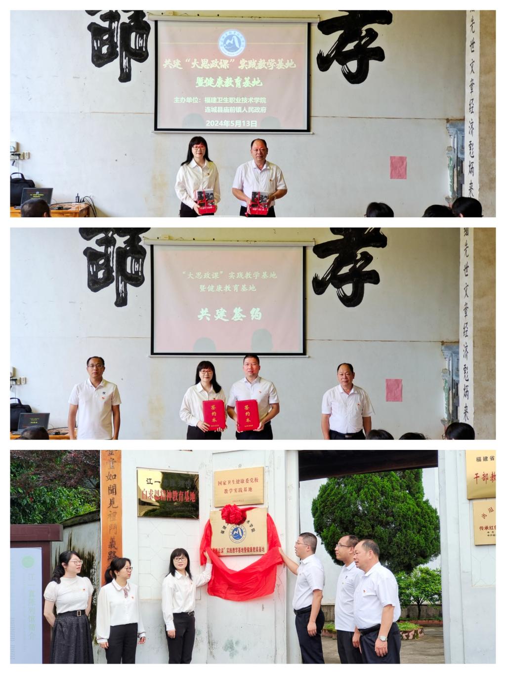 我校與連城縣廟前鎮(zhèn)人民政府、連城縣廟前鎮(zhèn)共建“大思政課”實踐教學基地暨健康教育基地簽約揭牌儀式在廟前鎮(zhèn)廟上村江一真陳列館隆重舉行,儀式由江發(fā)揚主持。