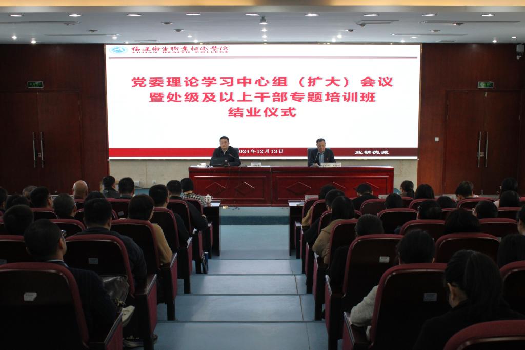 講座結(jié)束后,舉辦了學(xué)校處級及以上干部黨的二十屆三中全會專題培訓(xùn)班結(jié)業(yè)儀式,曾武祈強(qiáng)調(diào)要以此次輔導(dǎo)為契機(jī),運(yùn)用好專題培訓(xùn)的成果,在全面學(xué)習(xí)把握、貫徹落實上持續(xù)下功夫,堅定不移地把黨的二十屆三中全會精神落實到統(tǒng)一思想上、落實到具體行動上。一要始終堅持深學(xué)細(xì)悟、內(nèi)化于心,永葆對黨的絕對忠誠。帶著感情、帶著使命、帶著信仰,把學(xué)習(xí)黨的二十屆三中全會精神、全國教育大會精神,與學(xué)習(xí)習(xí)近平總書記來閩的重要講話精神緊密結(jié)合起來,一體聯(lián)動學(xué)、深入思考學(xué)、聯(lián)系實際學(xué)。二要始終堅持全員學(xué)習(xí)、全域覆蓋,切實凝聚強(qiáng)大精神力量。學(xué)習(xí)宣傳貫徹黨的二十屆三中全會精神,是一個常學(xué)常新、不斷深化的過程。我們要持續(xù)加大力度、拓展深度、延伸廣度,不斷增強(qiáng)學(xué)習(xí)宣傳的理論深度、實踐力度、情感溫度。三要始終堅持篤信篤行、實干苦干,強(qiáng)化擔(dān)當(dāng)作為推動發(fā)展。學(xué)習(xí)宣傳貫徹黨的二十屆三中全會精神,最關(guān)鍵的是不折不扣抓貫徹、全力以赴抓落實。各二級黨組織、各職能部門要把學(xué)習(xí)貫徹黨的二十屆三中全會精神與謀劃推動學(xué)校高質(zhì)量發(fā)展、抓好當(dāng)前工作緊密結(jié)合起來,按照2024年年終工作和2025年開局工作的要求,找準(zhǔn)工作的切入點、結(jié)合點、著力點抓好貫徹落實。
