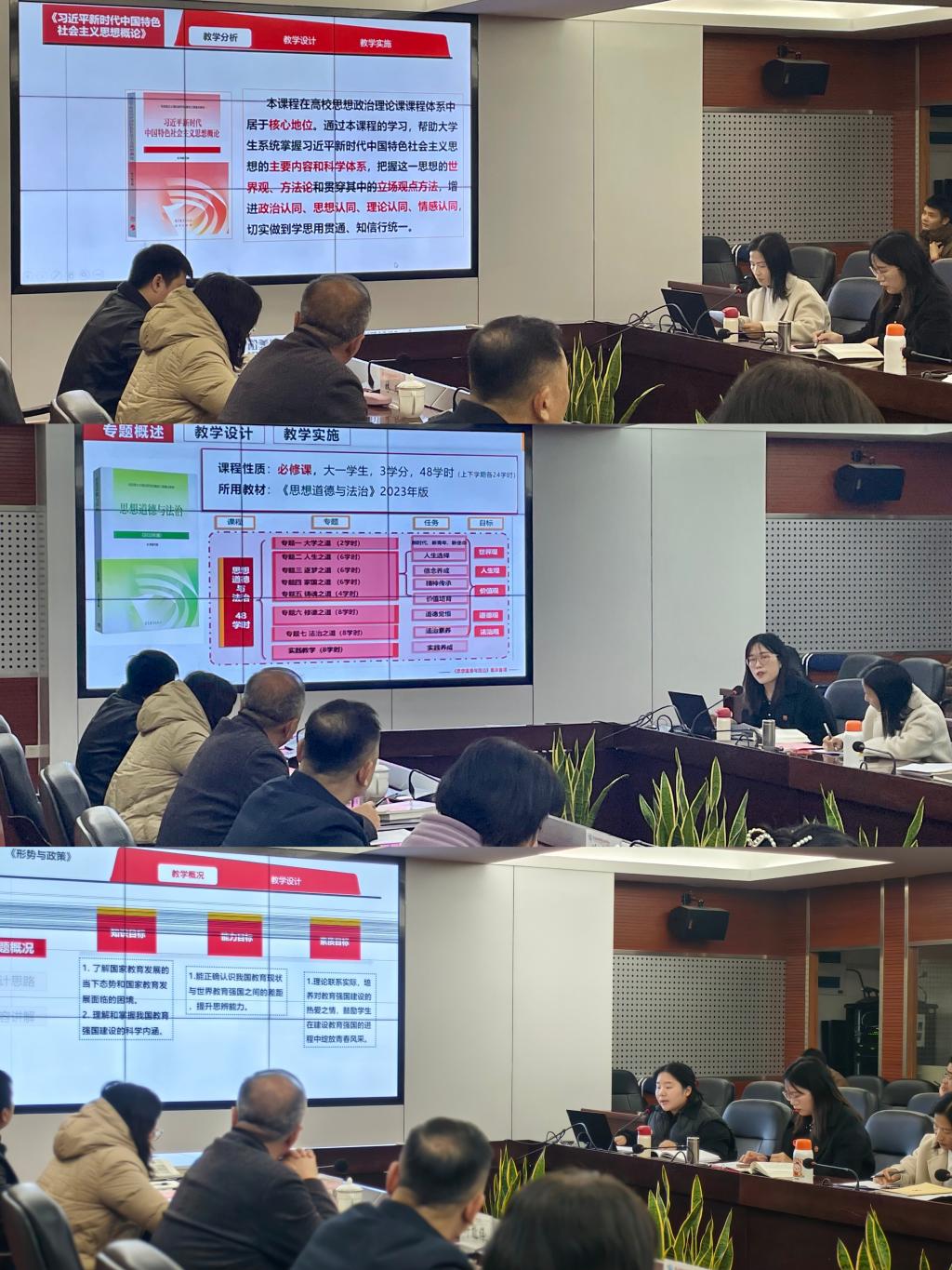 校領(lǐng)導(dǎo)分別對(duì)三門課程的集備展示進(jìn)行了精準(zhǔn)點(diǎn)評(píng),高度評(píng)價(jià)集體備課成果成效,并針對(duì)教學(xué)內(nèi)容的準(zhǔn)度、深度及課程邏輯的嚴(yán)密性提出建設(shè)性意見。校長(zhǎng)許能鋒表示,要始終以學(xué)生發(fā)展需要為中心,區(qū)分教學(xué)目標(biāo)與學(xué)習(xí)目標(biāo),強(qiáng)化課程內(nèi)容的針對(duì)性與吸引力;要聚焦內(nèi)在發(fā)展需求,將黨的最新理論成果和時(shí)事熱點(diǎn)融入教學(xué),使學(xué)生能夠?qū)W以致用,真正將理論知識(shí)轉(zhuǎn)化為實(shí)踐動(dòng)力;要深化對(duì)教育強(qiáng)國(guó)的理解與認(rèn)識(shí),凝練學(xué)校發(fā)展成果,以校本化案例強(qiáng)化學(xué)生認(rèn)知。校黨委書記曾武祈聚焦思政課建設(shè),提出明確要求和殷切期望。一是總結(jié)提升規(guī)范化,要制定標(biāo)準(zhǔn)化集體備課流程,加強(qiáng)集體備課成果的總結(jié)提煉,確保備課過(guò)程規(guī)范有序。二是常備多磨高質(zhì)量,要建立常態(tài)化集體備課機(jī)制,加強(qiáng)教學(xué)資源的共建共享,深入交流教學(xué)理念、教學(xué)方法和教學(xué)策略,共同解決教學(xué)難點(diǎn)問(wèn)題。三是求新求進(jìn)求共情,要關(guān)注學(xué)生的學(xué)習(xí)需求和學(xué)習(xí)體驗(yàn),將社會(huì)熱點(diǎn)融入課程建設(shè),大膽嘗試新的教學(xué)理念、教學(xué)方法和教學(xué)手段,不斷提升課堂教學(xué)效果。四是點(diǎn)面兼顧節(jié)奏穩(wěn),要突出重點(diǎn),統(tǒng)籌兼顧,循序漸進(jìn)地引導(dǎo)學(xué)生實(shí)現(xiàn)課程目標(biāo),從掌握課程精髓到領(lǐng)悟其中蘊(yùn)含的世界觀、方法論。