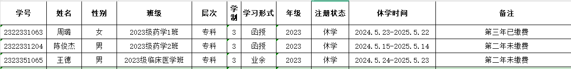 附件1:休學(xué)名單
