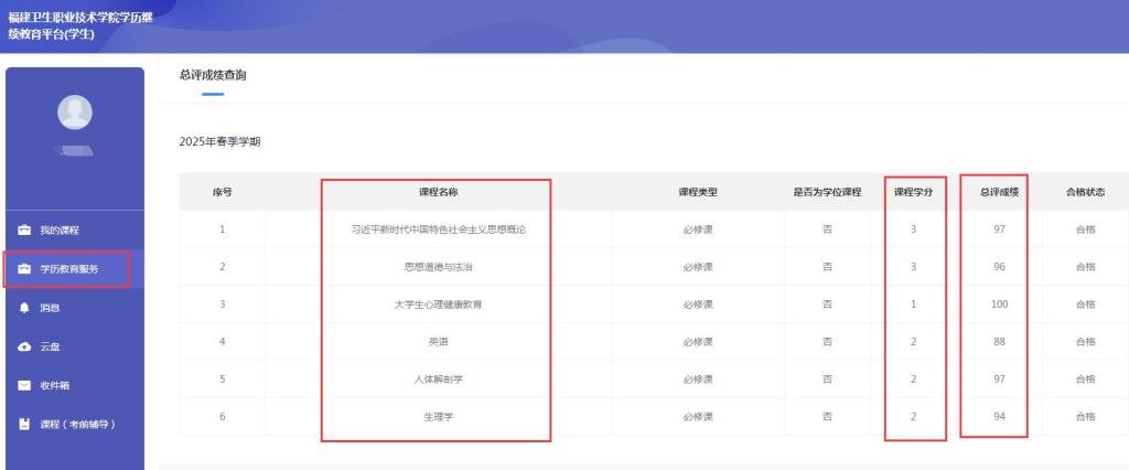 申請(qǐng)方式:請(qǐng)下載模版(詳見(jiàn)班級(jí)群),填入個(gè)人信息及總評(píng)成績(jī)向所屬班級(jí)班主任提交蓋章申請(qǐng)。成績(jī)查詢可登錄“福建衛(wèi)生職業(yè)技術(shù)學(xué)院學(xué)歷繼續(xù)教育平臺(tái)——學(xué)歷教育服務(wù)——總評(píng)成績(jī)查詢”。