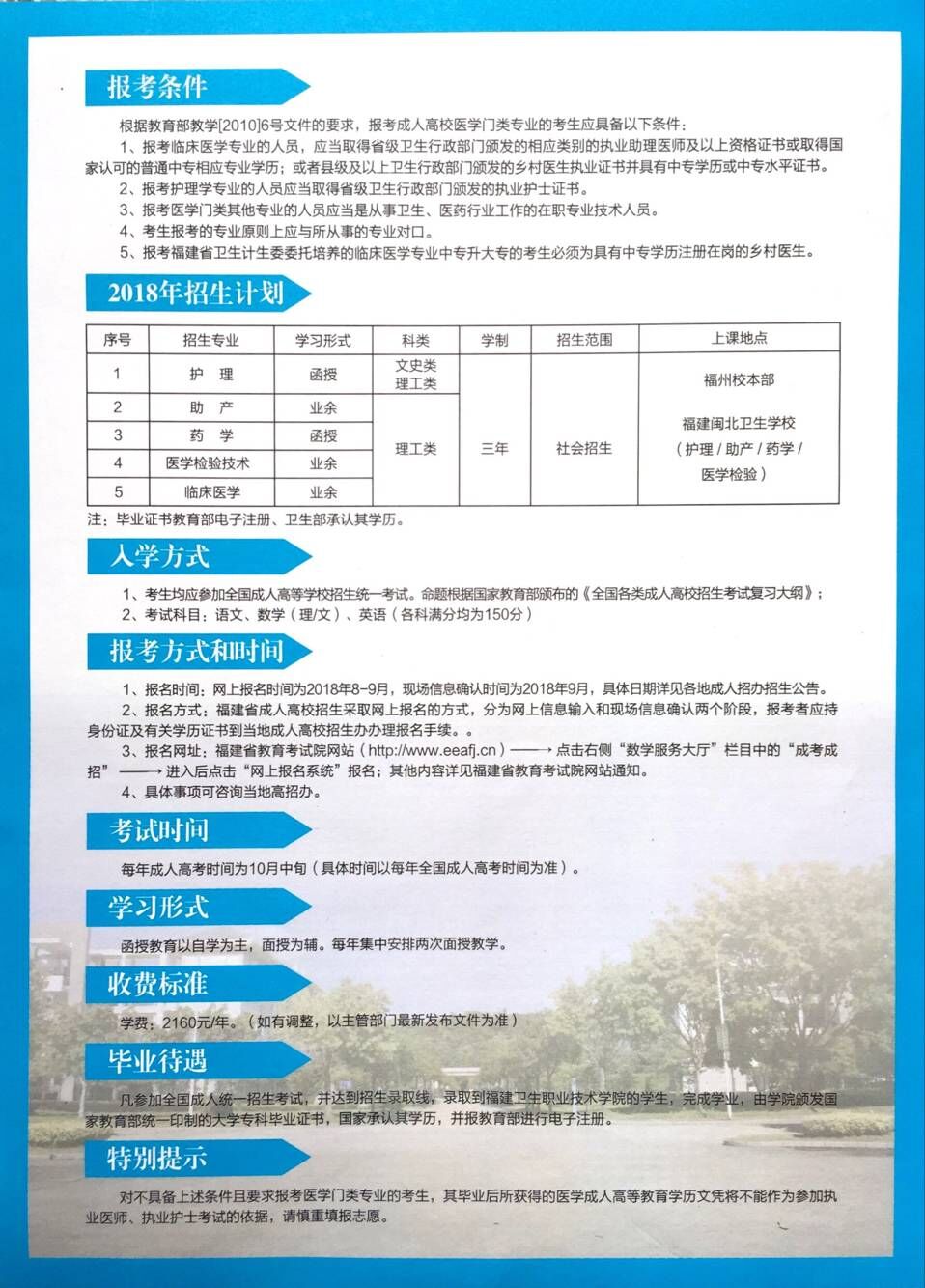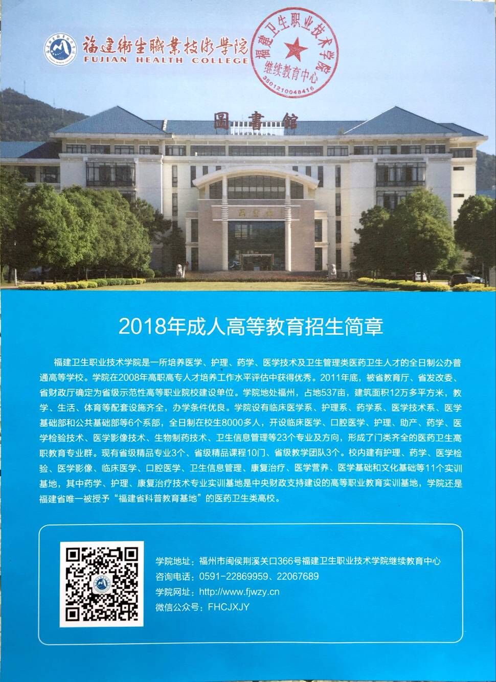 2018年福建衛(wèi)生職業(yè)技術(shù)學院成人教育招生簡章