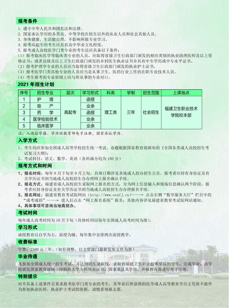福建衛(wèi)生職業(yè)技術學院函授