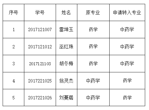 根據(jù)中國藥科大學(xué)繼續(xù)教育學(xué)院相關(guān)管理規(guī)定,2020級雷坤玉等5人因個人工作需要等原因,提出轉(zhuǎn)專業(yè)申請,經(jīng)班主任審核,我站研究審議,該5名學(xué)生符合轉(zhuǎn)專業(yè)條件,同意轉(zhuǎn)專業(yè),并上報中國藥科大學(xué)繼續(xù)教育學(xué)院審批。 現(xiàn)將轉(zhuǎn)專業(yè)名單予以公示,公示期12月21日至12月25日,如有異議,請以書面形式在公示期內(nèi)向我站反饋。聯(lián)系電話:0591-22869959