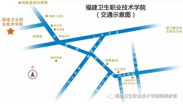 5.自駕車路線:①從三環(huán)路往南平、閩侯方向到荊溪出口(閩侯縣城、洪甘路)下,右轉沿洪甘路朝閩侯縣城方向約3.5公里至福建衛(wèi)生職業(yè)技術學院。②從福銀高速閩侯竹岐出口下,右轉(向西)過閩侯大橋,沿福州方向路標至福建衛(wèi)生職業(yè)技術學院(閩侯大橋至我院約9公里)。