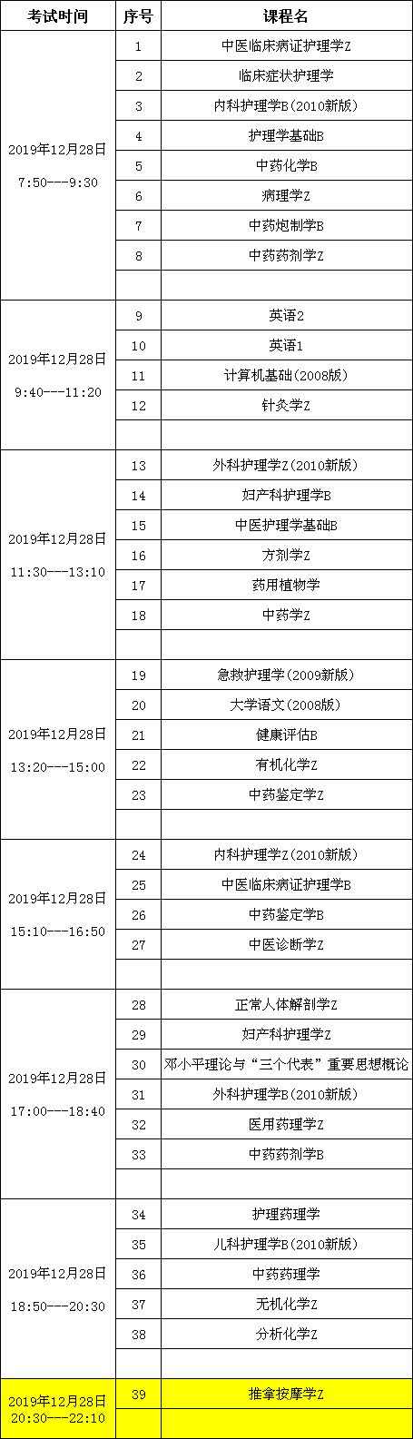 3.出于學(xué)生夜晚出行安全考慮,每天考試的最后一場有可能提前,最終以微信公眾號的考場座位查詢表(準考證)上的時間安排為準,其余場次時間安排無變動,請有參加每天最后一場考試的同學(xué)注意看考場座位查詢表上的時間。