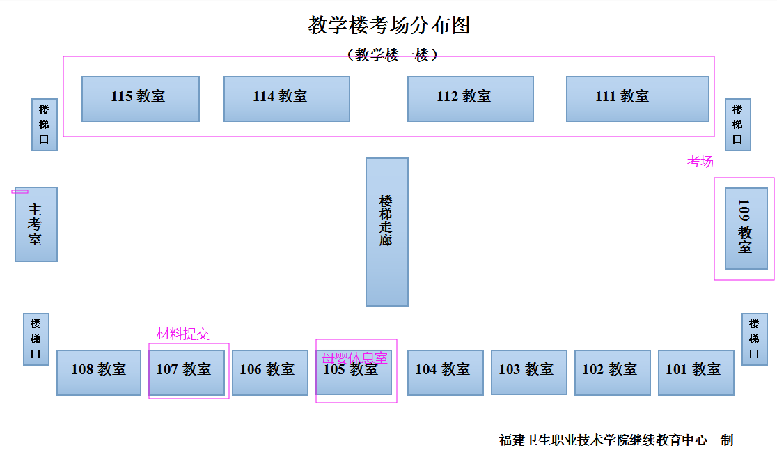 8.期末考試期間,主考室設為教學樓110教室。母嬰室設在教學樓105。材料提交和發(fā)放設在教學樓107。