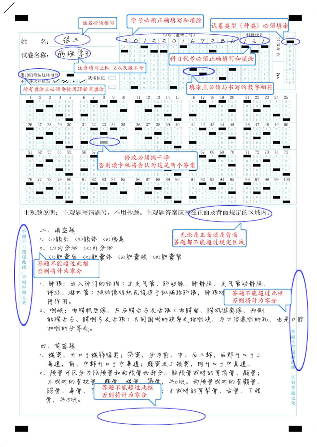 附件2:北中醫(yī)遠程教育學院考試答題卡填涂標準