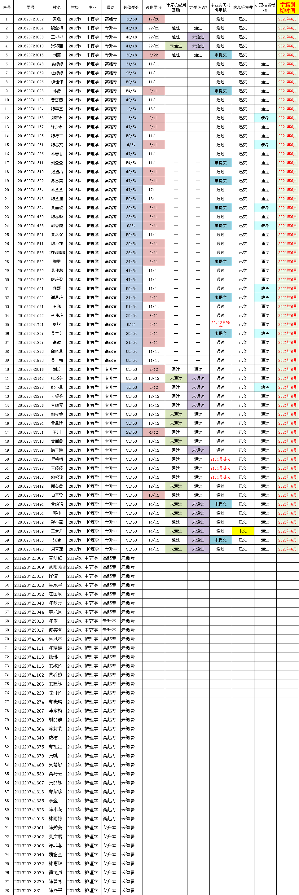 經(jīng)審核,截止2020年12月,2016秋部分學(xué)生還未達(dá)到畢業(yè)條件,主要有以下幾種情況: