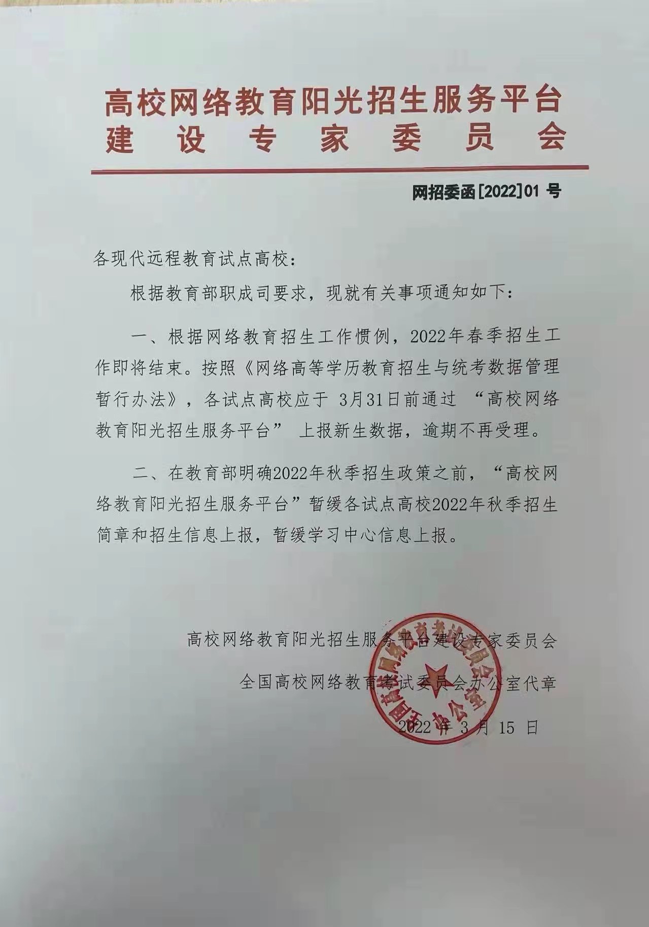 近日,北京中醫(yī)大學接網(wǎng)考辦通知,2022春新生上報數(shù)據(jù)日期仍為3月31日止,2022年秋季招生簡章和招生信息在教育部明確秋季招生政策前暫緩上報,故繼續(xù)教育學部將2022春季招生截止時間調(diào)整為2022年3月20日17點,請有意向報名的考生安排好報名時間。
