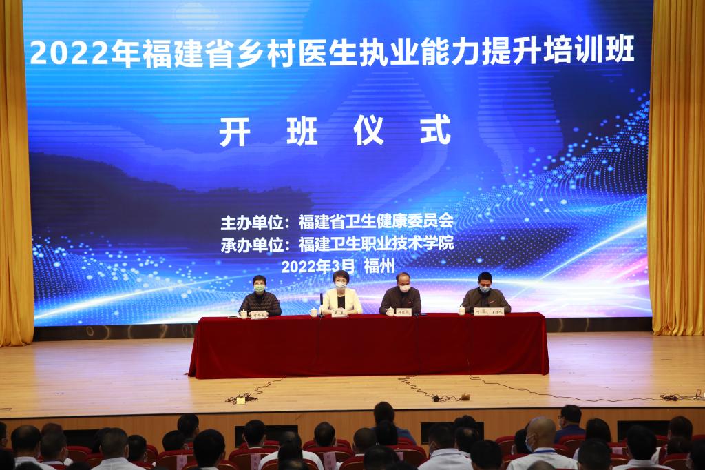 3月2日,2022年福建省鄉(xiāng)村醫(yī)生執(zhí)業(yè)能力提升培訓(xùn)班開(kāi)班儀式在我校學(xué)術(shù)廳舉行。福建省衛(wèi)健委副主任黃昱、校長(zhǎng)許能鋒出席儀式并講話。省衛(wèi)健委基層處處長(zhǎng)付冬香、四級(jí)調(diào)研員葉晶晶,校黨政辦公室、護(hù)理學(xué)院、醫(yī)學(xué)院、健康管理系等部門負(fù)責(zé)人出席儀式,首批300余名鄉(xiāng)村醫(yī)生參加培訓(xùn)。開(kāi)班儀式由繼續(xù)教育學(xué)院副院長(zhǎng)何烜主持。