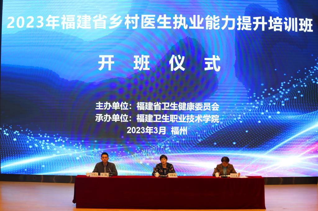 3月27日,2023年福建省鄉(xiāng)村醫(yī)生執(zhí)業(yè)能力提升培訓(xùn)班開班儀式在我校學(xué)術(shù)廳舉行。福建省衛(wèi)生健康委員會(以下簡稱省衛(wèi)健委)基層處處長付冬香、學(xué)校副校長朱扶蓉出席儀式并講話。護理學(xué)院、醫(yī)學(xué)院、健康管理系等院系負責(zé)人及340名鄉(xiāng)村醫(yī)生參加開班儀式。開班儀式由繼續(xù)教育學(xué)院副院長何烜主持。