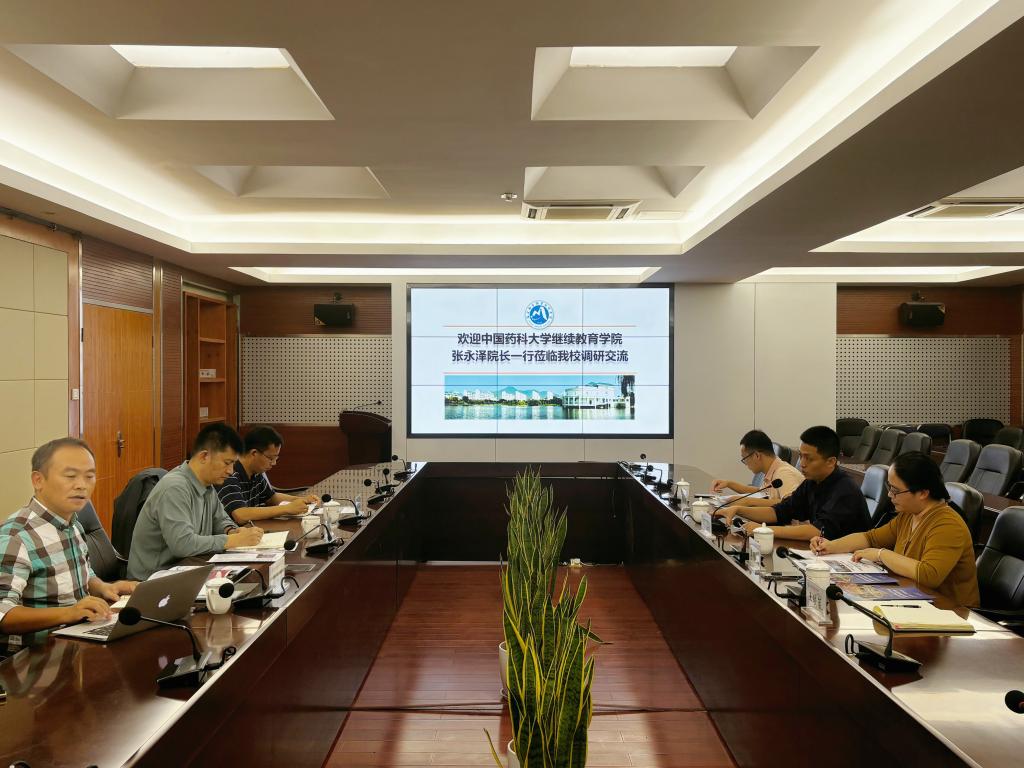 10月25日下午,中國(guó)藥科大學(xué)繼續(xù)教育學(xué)院院長(zhǎng)張永澤、學(xué)歷教育部主任時(shí)和友、培訓(xùn)中心徐山昌一行來(lái)我院調(diào)研交流。我校繼續(xù)教育學(xué)院副院長(zhǎng)何烜以及相關(guān)業(yè)務(wù)工作人員參加座談交流。