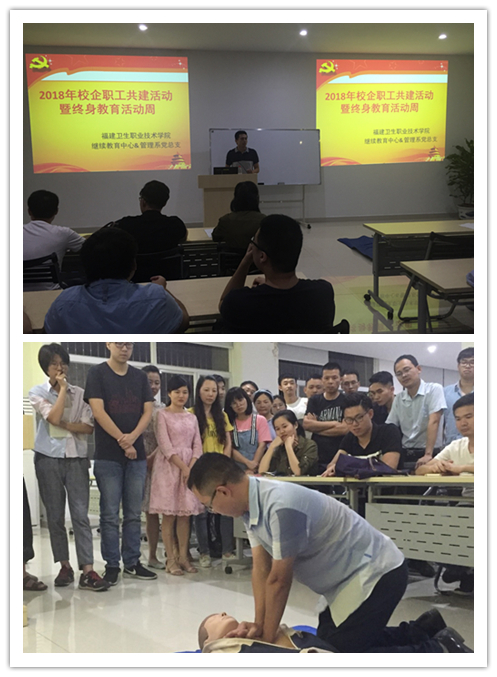 本次活動(dòng)由繼續(xù)教育中心何烜老師主持,管理系教師黨員王國浩講解演示心肺復(fù)蘇術(shù)的操作步驟,管理系教師黨員溫曉黛現(xiàn)場教授辦公室運(yùn)動(dòng)放松方法,吸引了許多職工的積極參與。各位職工紛紛動(dòng)手操作學(xué)習(xí),得到了出席教師黨員的指導(dǎo)。公司職工表示學(xué)到的知識(shí)實(shí)用性強(qiáng),能夠?yàn)樽陨淼慕】蛋l(fā)展有促進(jìn)作用。此次活動(dòng)積極營造了終身教育、終身學(xué)習(xí)的良好社會(huì)氛圍;大家深刻地意識(shí)到終身學(xué)習(xí)的重要性,表示將繼續(xù)深入學(xué)習(xí)貫徹習(xí)近平新時(shí)代中國特色社會(huì)主義思想和黨的十九大精神,培育和弘揚(yáng)社會(huì)主義核心價(jià)值觀。