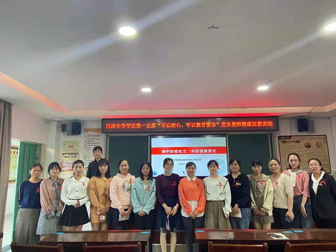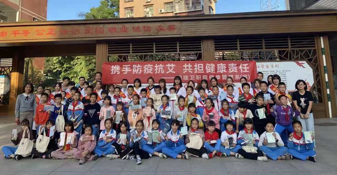 在2020年職業(yè)教育活動(dòng)周來臨之際,為發(fā)揮職業(yè)教育服務(wù)社會(huì)職能,福建衛(wèi)生職業(yè)技術(shù)學(xué)院健康管理系黨總支副書記吳燕玲帶領(lǐng)“雙帶頭人”教師黨支部師生黨員、青年團(tuán)員來到白沙中心小學(xué),以志愿者身份開展以“攜手防疫抗艾 共建健康中國(guó)”為主題的健康教育課,白沙小學(xué)學(xué)區(qū)6所學(xué)校老師、家長(zhǎng)代表、小學(xué)生等500余人參加。