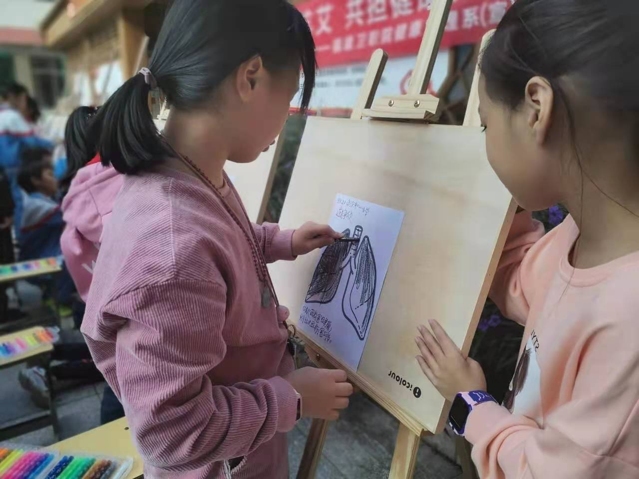 學(xué)校是人口密集的場(chǎng)所,學(xué)生群體復(fù)雜,相互接觸頻繁,受到學(xué)習(xí)負(fù)擔(dān)重、生活不規(guī)律、抵抗力差等因素影響,容易發(fā)生結(jié)核病。通過前期發(fā)放肺結(jié)核知識(shí)題庫(kù)擴(kuò)大知識(shí)面和現(xiàn)場(chǎng)開展結(jié)核病防治知識(shí)競(jìng)賽促使小學(xué)生加深對(duì)結(jié)核病相關(guān)知識(shí)的了解。志愿者通過設(shè)立人形立牌、發(fā)放防治結(jié)核病宣傳單、利用肺涂色小游戲等多種小學(xué)生喜聞樂見的形式,增加宣教活動(dòng)趣味性的同時(shí),將結(jié)核防治知識(shí)傳遞給小學(xué)生,提高小學(xué)生對(duì)結(jié)核病相關(guān)知識(shí)的知曉率,在宣教的過程中增強(qiáng)志愿者與小學(xué)生之間的互動(dòng),使小學(xué)生了解防治結(jié)核病的知識(shí),樹立防治結(jié)核病的意識(shí)。