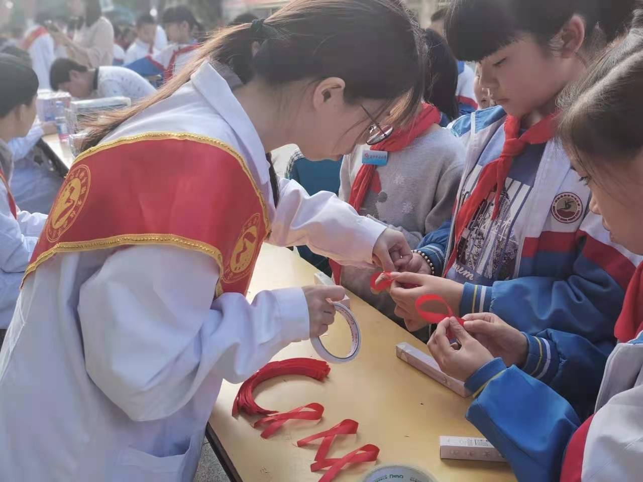 △志愿者向小學(xué)生宣傳防艾知識(shí)