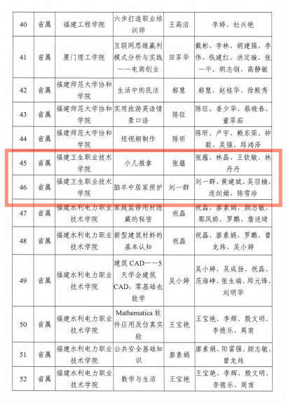 近日,根據(jù)《福建省教育廳關(guān)于公布第三批省終身教育重點項目立項及立項建設(shè)項目驗收結(jié)果的通知》(閩教職成〔2020〕37號),我校老年大學(xué)項目獲批《福建省高校老年大學(xué)建設(shè)項目》;醫(yī)學(xué)系張?zhí)N老師主持的《小兒推拿》項目、護理學(xué)院劉一群老師主持的《腦卒中居家照護》項目入選省級繼續(xù)教育網(wǎng)絡(luò)課程;連劍娟老師主持的《農(nóng)村社區(qū)腫瘤防治知識終身教育模式的研究》項目、劉一群老師主持的《腦卒中康復(fù)護理》慕課在社區(qū)老年健康教育中的應(yīng)用研究項目入選終身教育研究課題。特此祝賀!
