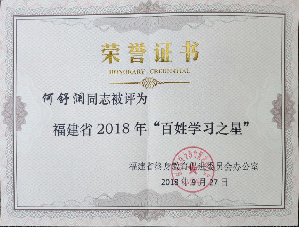 2018年9月28日下午,2018年福建省“9·28終身教育活動日”暨全民終身學(xué)習(xí)活動周開幕式在福建廣播電視大學(xué)綜合樓六樓隆重舉行,我院藥學(xué)系舒瀾同志榮獲2018年福建省“百姓學(xué)習(xí)之星”稱號并作為代表出席本次開幕式。