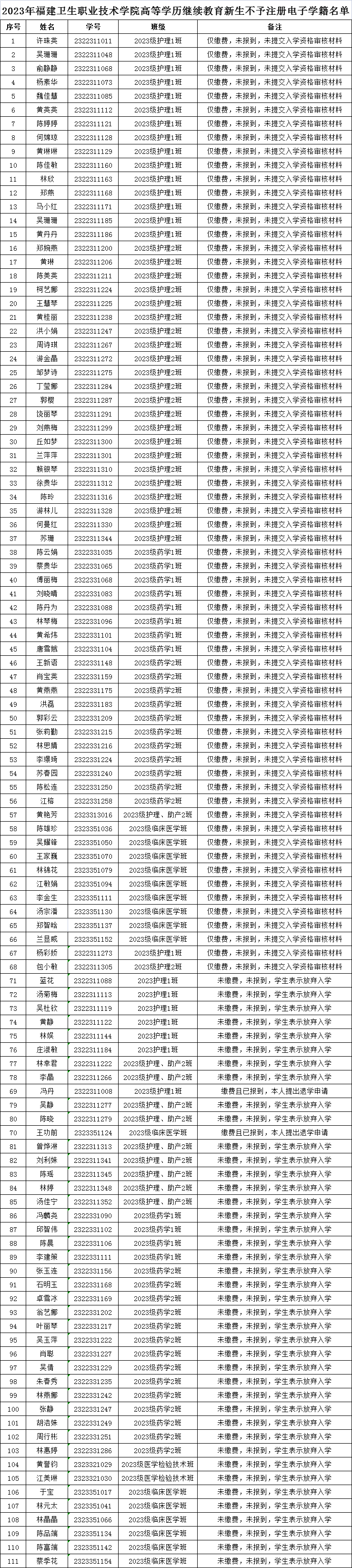 附件:2023年福建衛(wèi)生職業(yè)技術(shù)學(xué)院高等學(xué)歷繼續(xù)教育新生不予注冊(cè)電子學(xué)籍名單