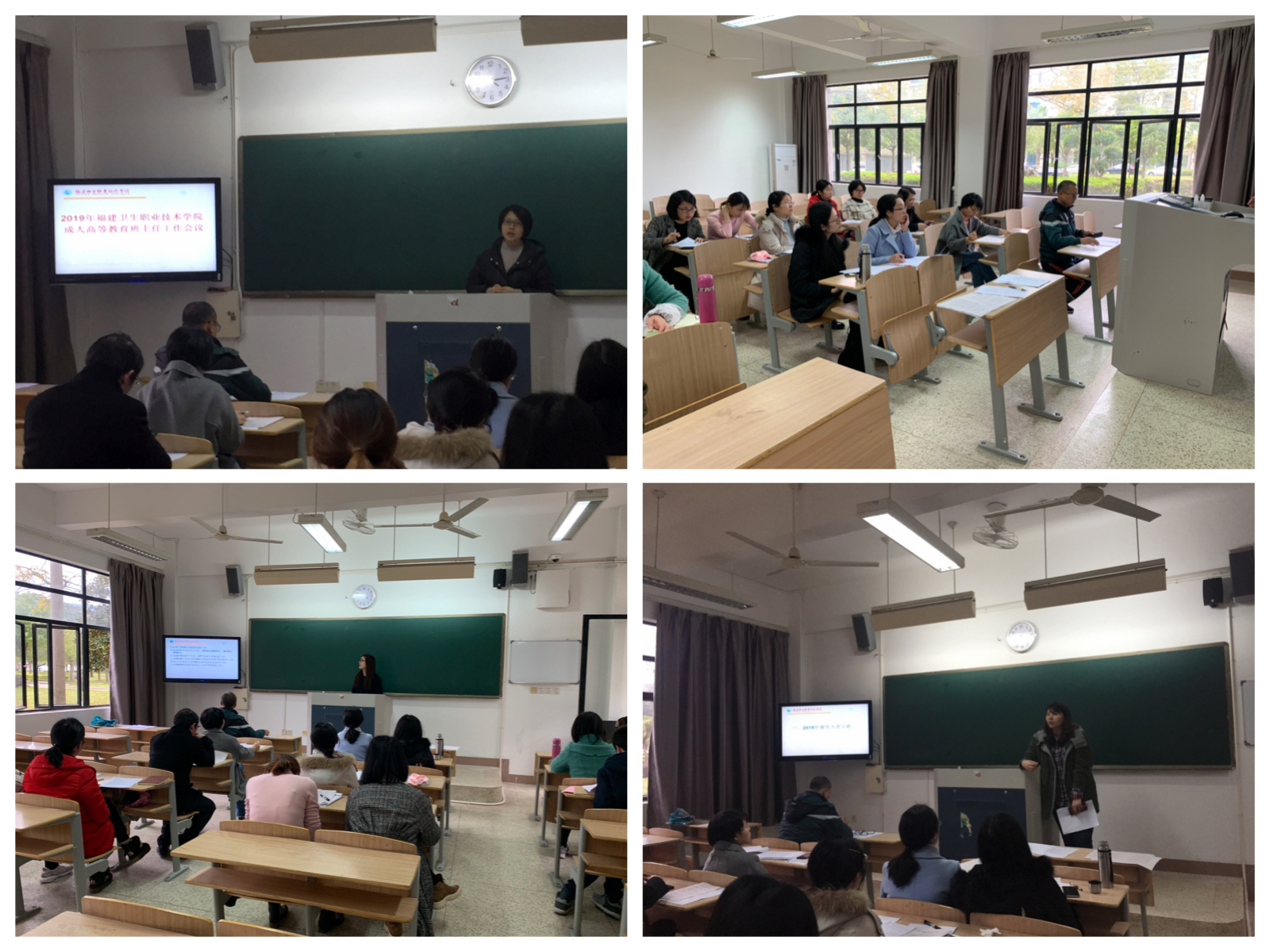 會議分三個階段,第一部分是由函授科科長石瑜婷匯報2018年我院成人高等教育總體工作情況。匯報中總結(jié)了2018年班主任工作的各種亮點也提出了尚存在的不足之處。圍繞不足之處,繼續(xù)教育中心工作人員和班主任們一起對班主任管理制度和班主任評價制度進行小組討論并收集相關(guān)意見。第二部分是由繼續(xù)教育中心主任陳筱瑜發(fā)言。在對各位班主任在成人教育管理方面所做的努力和奉獻給予了充分肯定的同時,她還強調(diào):2019年進一步規(guī)范學(xué)生的日??记诠ぷ鳎顚哟蔚丶訌妼W(xué)生和教師日常教學(xué)督導(dǎo)的管理。第三部分是由函授科科員王皎葳班詳細介紹了2019級新生入學(xué)報到的工作安排及任務(wù)分配。
