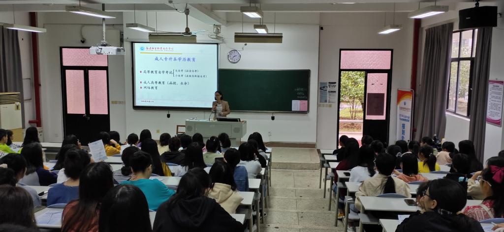 3、舉辦新生入學(xué)教育專場招生宣傳講座和主題班會,與輔導(dǎo)員一同走進(jìn)學(xué)生,對自考本專銜接助學(xué)班的優(yōu)勢及課程安排等內(nèi)容進(jìn)行宣講,進(jìn)一步激發(fā)學(xué)生報(bào)考積極性。