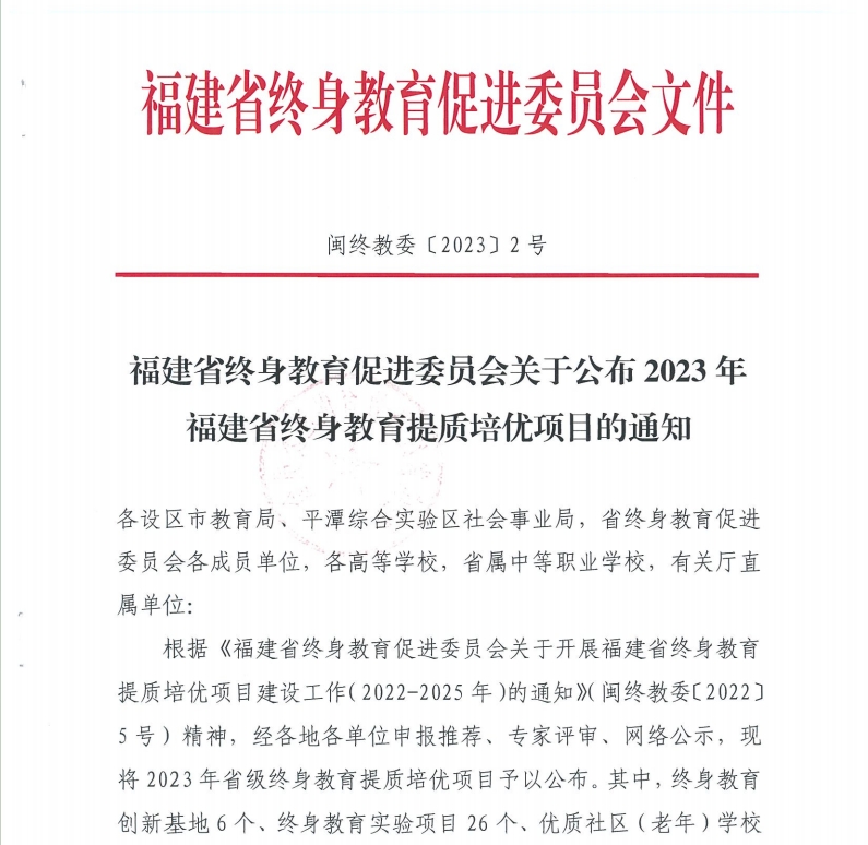 喜報 | 我校成功入選2023年福建省終身教育提質培優(yōu)項目