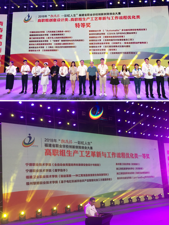 本次大賽由共青團福建省委、福建省教育廳、福建省人力資源和社會保障廳、福建省科學技術(shù)協(xié)會、福建省學生會聯(lián)合會共同舉辦,黎明職業(yè)大學、共青團泉州市委承辦。來自全省35所職業(yè)學校共計189件作品中有92件作品入圍終審決賽。我院護理系《共享護士——您身邊的移動護理專家》和藥學系《腸益藻素·一種江蘺海藻廢渣微生物發(fā)酵飼料》成功入圍決賽,經(jīng)過作品展示、陳述答辯環(huán)節(jié)的激烈角逐,最終在本屆大賽中分別榮獲特等獎和一等獎,并取得代表福建省參加國賽的資格。