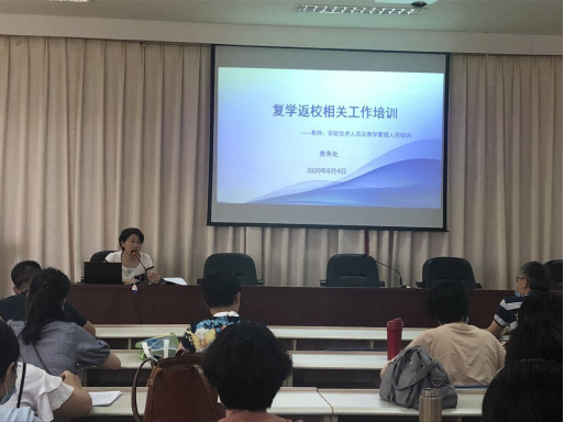 隨后,朱扶蓉處長(zhǎng)分別從學(xué)生錯(cuò)峰返校及教學(xué)安排、分批次返校教室安排、復(fù)課證明查驗(yàn)制度、課堂突發(fā)情況處置、疫情防控期間實(shí)訓(xùn)室管理等五個(gè)方面進(jìn)行了詳細(xì)的講解與培訓(xùn),強(qiáng)調(diào)各位教師、實(shí)驗(yàn)技術(shù)人員及教學(xué)管理人員根據(jù)疫情防控要求,遇到突發(fā)事件時(shí)主動(dòng)報(bào)告,按處置流程規(guī)范處理,相關(guān)部門(mén)及時(shí)做好后續(xù)消殺工作。