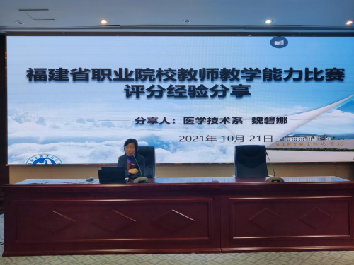 隨后,醫(yī)學(xué)技術(shù)系副主任魏碧娜作為評(píng)委代表就職業(yè)院校教師教學(xué)能力比賽的各個(gè)階段的備賽要點(diǎn)進(jìn)行了講解,并從評(píng)委專(zhuān)家的角度出發(fā),講述了在網(wǎng)絡(luò)評(píng)審及現(xiàn)場(chǎng)評(píng)審過(guò)程中的易扣分點(diǎn),希望未來(lái)準(zhǔn)備參賽的老師們加以注意。