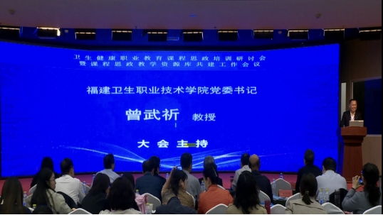 本次會議圍繞“衛(wèi)生健康職業(yè)教育課程思政培訓研討及資源庫共建共享”兩個主題,邀請了8位國內(nèi)知名的課程思政研究專家、國家級課程思政教學研究中心及示范課程主持人,從學校、教師、專業(yè)、課程、課堂、資源建設等層面做了專題講座。我校黨委書記曾武祈作為大會主持之一。