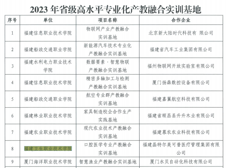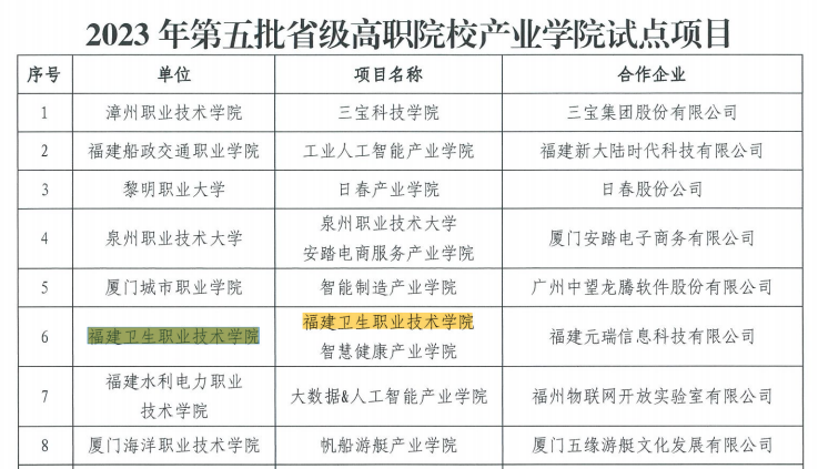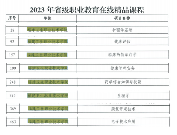 日前,福建省教育廳公布了2023年省級(jí)職業(yè)教育信息化和產(chǎn)教融合重點(diǎn)項(xiàng)目。我?!爸腔劢】诞a(chǎn)業(yè)學(xué)院”項(xiàng)目獲批省級(jí)第五批高職院校產(chǎn)業(yè)學(xué)院試點(diǎn)項(xiàng)目;“口腔醫(yī)學(xué)專業(yè)產(chǎn)教融合實(shí)訓(xùn)基地”項(xiàng)目獲批省級(jí)高水平專業(yè)化產(chǎn)教融合實(shí)訓(xùn)基地;《護(hù)理學(xué)基礎(chǔ)》《健康評(píng)估》《臨床藥物治療學(xué)》《健康管理實(shí)務(wù)》《藥學(xué)綜合知識(shí)與技能》《生理學(xué)》《康復(fù)評(píng)定技術(shù)》《電子技術(shù)應(yīng)用》8門課程獲評(píng)省級(jí)職業(yè)教育在線精品課程;“護(hù)理專業(yè)教學(xué)資源庫(kù)”“預(yù)防醫(yī)學(xué)專業(yè)教學(xué)資源庫(kù)”2個(gè)項(xiàng)目列為省級(jí)職業(yè)教育專業(yè)教學(xué)資源庫(kù);《醫(yī)學(xué)信息技術(shù)基礎(chǔ)》《成人護(hù)理-外科護(hù)理》《病理學(xué)與病理生理學(xué)》《經(jīng)絡(luò)與腧穴》4門省級(jí)職業(yè)教育精品在線開放課程通過驗(yàn)收。