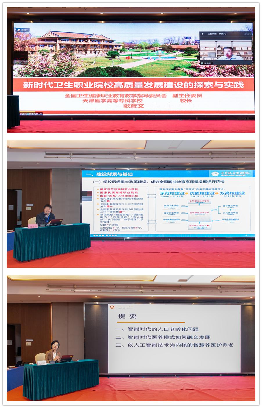 會上,來自省內(nèi)外醫(yī)藥衛(wèi)生與健康領(lǐng)域的三位專家教授圍繞大會主題進行專題報告。天津醫(yī)學高等??茖W校校長張彥文以《新時代衛(wèi)生職業(yè)院校高質(zhì)量發(fā)展建設(shè)的探索與實踐》為題,通過現(xiàn)場連線的方式為參會人員開展講座。他分享了天津醫(yī)學高等??茖W校建設(shè)改革目標制定和實施的經(jīng)驗,為全面加強產(chǎn)教融合、校企合作提供高屋建瓴的指導(dǎo)。金華職業(yè)技術(shù)學院樓宏強教授以《職業(yè)教育深入推進產(chǎn)教融合實踐探索》為題,從建設(shè)背景、基礎(chǔ)、思路及舉措等層層推進,展開論述。福建師范大學吳宏洛教授以《人工智能時代醫(yī)養(yǎng)融合發(fā)展的養(yǎng)老服務(wù)探析》為題,闡述人工智能技術(shù)對健康養(yǎng)老產(chǎn)業(yè)及人才培養(yǎng)的影響,引發(fā)了現(xiàn)場人員的熱烈討論。三位專家的報告深入淺出地闡述了教育強國建設(shè)背景下如何通過產(chǎn)教融合實現(xiàn)教育鏈、人才鏈與產(chǎn)業(yè)鏈、創(chuàng)新鏈的有機銜接,干貨滿滿。