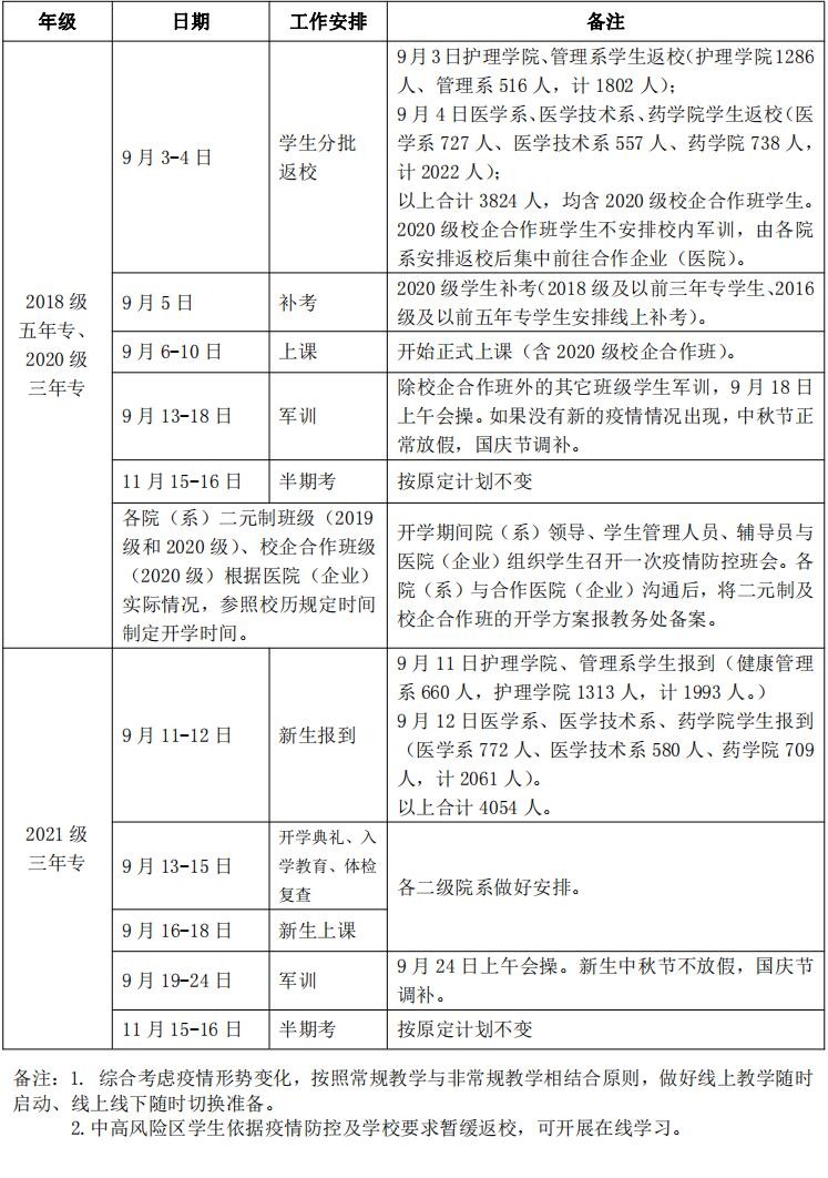 根據(jù)疫情現(xiàn)狀及學校工作安排,2021年秋季學期開學教學相關工作安排作如下調(diào)整: