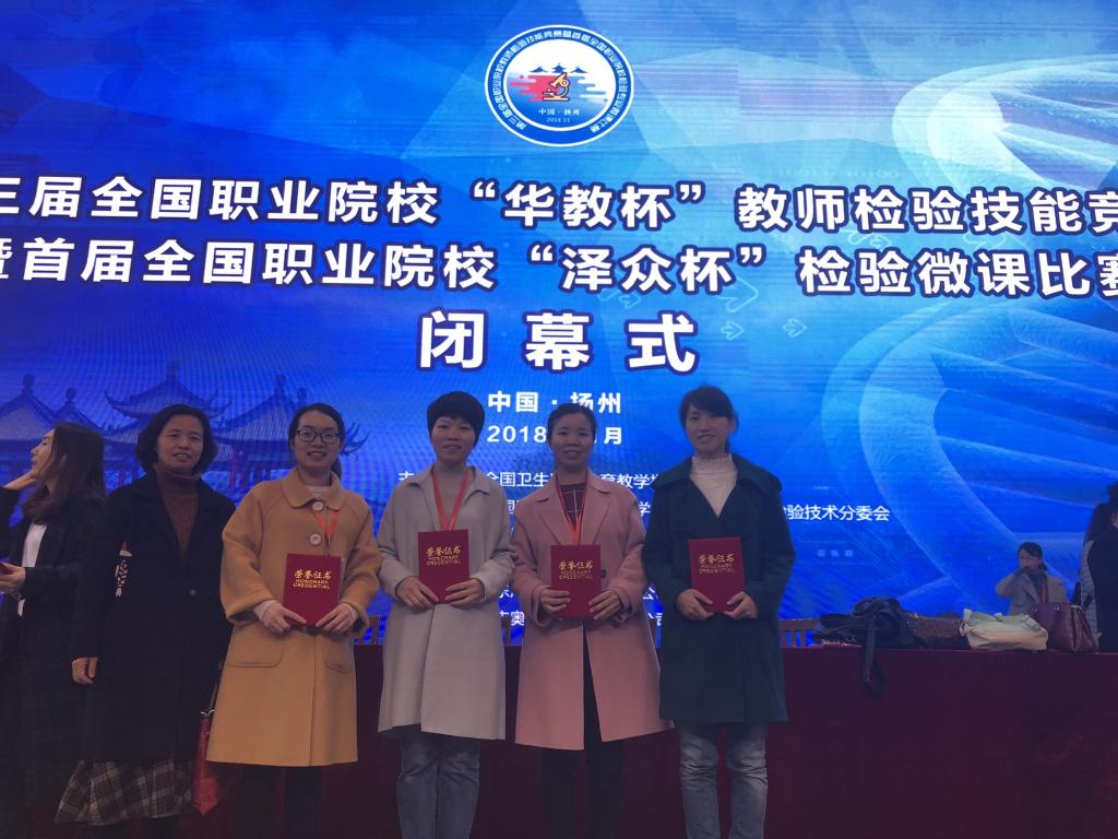 我院派出醫(yī)學(xué)技術(shù)系5位教師參加教師檢驗技能競賽、3位教師參加微課競賽。通過前期的刻苦訓(xùn)練和認(rèn)真準(zhǔn)備,參賽教師們在這兩類比賽中均交出了滿意的答卷。在第三屆全國職業(yè)院校“華教杯”教師檢驗技能競賽中,林雪金老師榮獲“形態(tài)學(xué)檢驗”項目的一等獎,余明明老師榮獲“微生物檢驗”項目的一等獎,盧虹老師榮獲“血常規(guī)檢驗”項目的二等獎,吳美芬老師榮獲“免疫學(xué)檢驗”項目的三等獎。在首屆全國職業(yè)院?!皾杀姳睓z驗專業(yè)微課競賽中,魏碧娜老師、彭臻菲老師均榮獲二等獎,李晶老師榮獲三等獎。