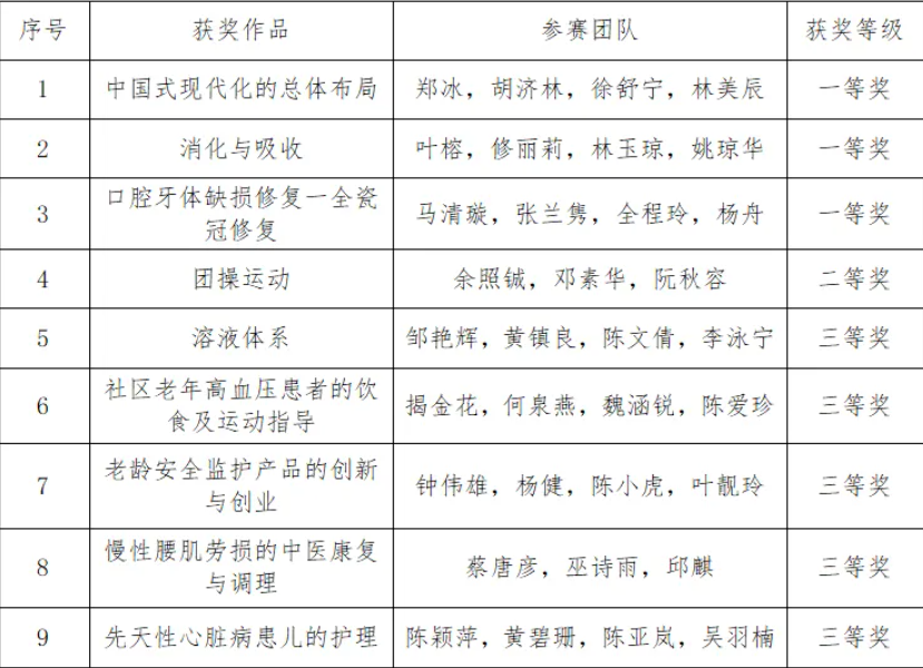 2024年福建省職業(yè)院校教學(xué)技能大賽教學(xué)能力比賽獲獎(jiǎng)名單