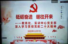 會上,支部全體黨員結(jié)合學(xué)校教務(wù)教學(xué)管理以及實(shí)習(xí)實(shí)訓(xùn)發(fā)展的需要和各自崗位工作實(shí)際,就如何把學(xué)習(xí)貫徹黨的二十大精神落實(shí)在實(shí)際行動和工作成效上作了深入交流研討。