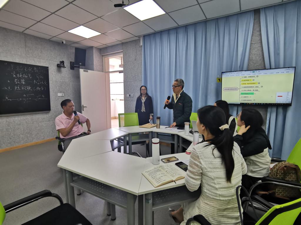 沈立心首先采用思維導(dǎo)圖的形式對大家進行了集中輔導(dǎo),分別從選題、制作教案、拍攝視頻、撰寫實施報告等方面進行了全面指導(dǎo)。他強調(diào):比賽與教學其實是互相促進的過程,教學比賽體現(xiàn)的不僅是為了比賽而進行的“突擊式”準備,更多的還是教師日常教學的積淀,因此教師在平時的教學中也要注重教學平臺的搭建及教學數(shù)據(jù)的累積。