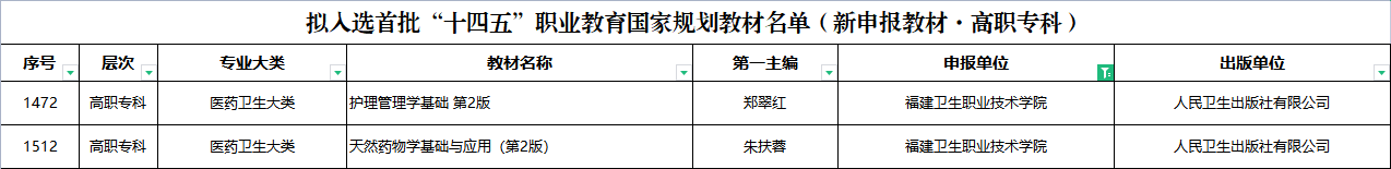日前,教育部職業(yè)教育與成人教育司公示了入選首批“十四五”職業(yè)教育國(guó)家規(guī)劃教材名單,我校鄭翠紅教授主編的《護(hù)理管理學(xué)基礎(chǔ)(第2版)》和朱扶蓉教授主編的《天然藥物學(xué)基礎(chǔ)與應(yīng)用(第2版)》兩部教材入選。這是學(xué)校深入貫徹落實(shí)黨中央、國(guó)務(wù)院關(guān)于教材建設(shè)的決策部署和《國(guó)家職業(yè)教育改革實(shí)施方案》相關(guān)要求的重要成果,也是學(xué)?!半p高”建設(shè)取得的又一新成績(jī)。