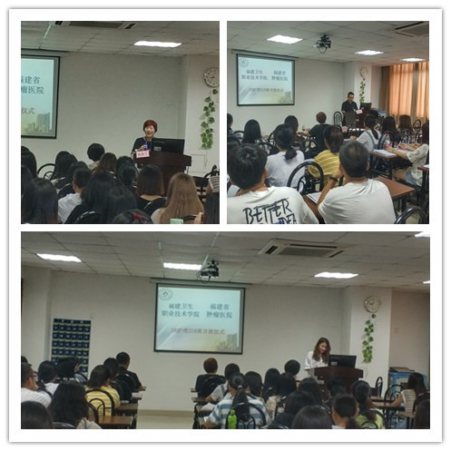 2019年9月2日上午8點(diǎn)30分,在福建省腫瘤醫(yī)院新綜合樓三樓示教室,福建衛(wèi)生職業(yè)技術(shù)學(xué)院聯(lián)合福建省腫瘤醫(yī)院舉行了2018級(jí)校企合作護(hù)理班開(kāi)班儀式。出席開(kāi)班儀式的校方代表有護(hù)理系林桂松副書(shū)記、輔導(dǎo)員吳薇老師,院方代表有福建省腫瘤醫(yī)院護(hù)理部駱惠玉主任、吳美華副主任、班主任鐘玲老師及各位課程負(fù)責(zé)人等,46名腫瘤班學(xué)生一起參加了開(kāi)班儀式。