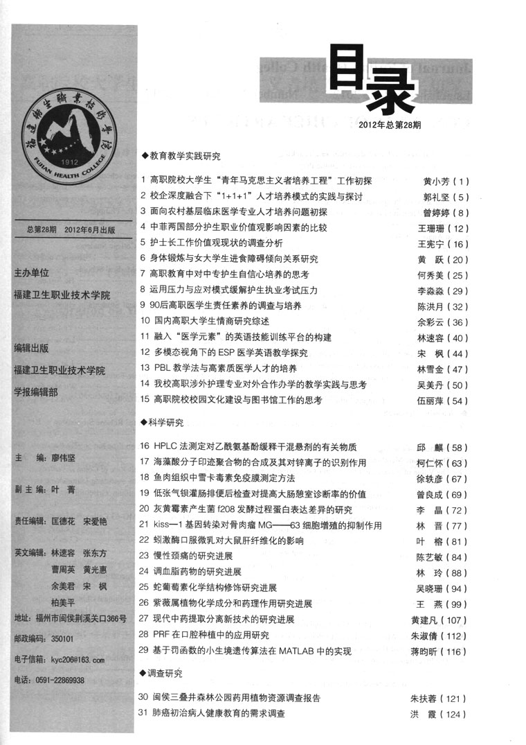 福建衛(wèi)生職業(yè)技術(shù)學(xué)院學(xué)報2012年總第二十八期 目錄