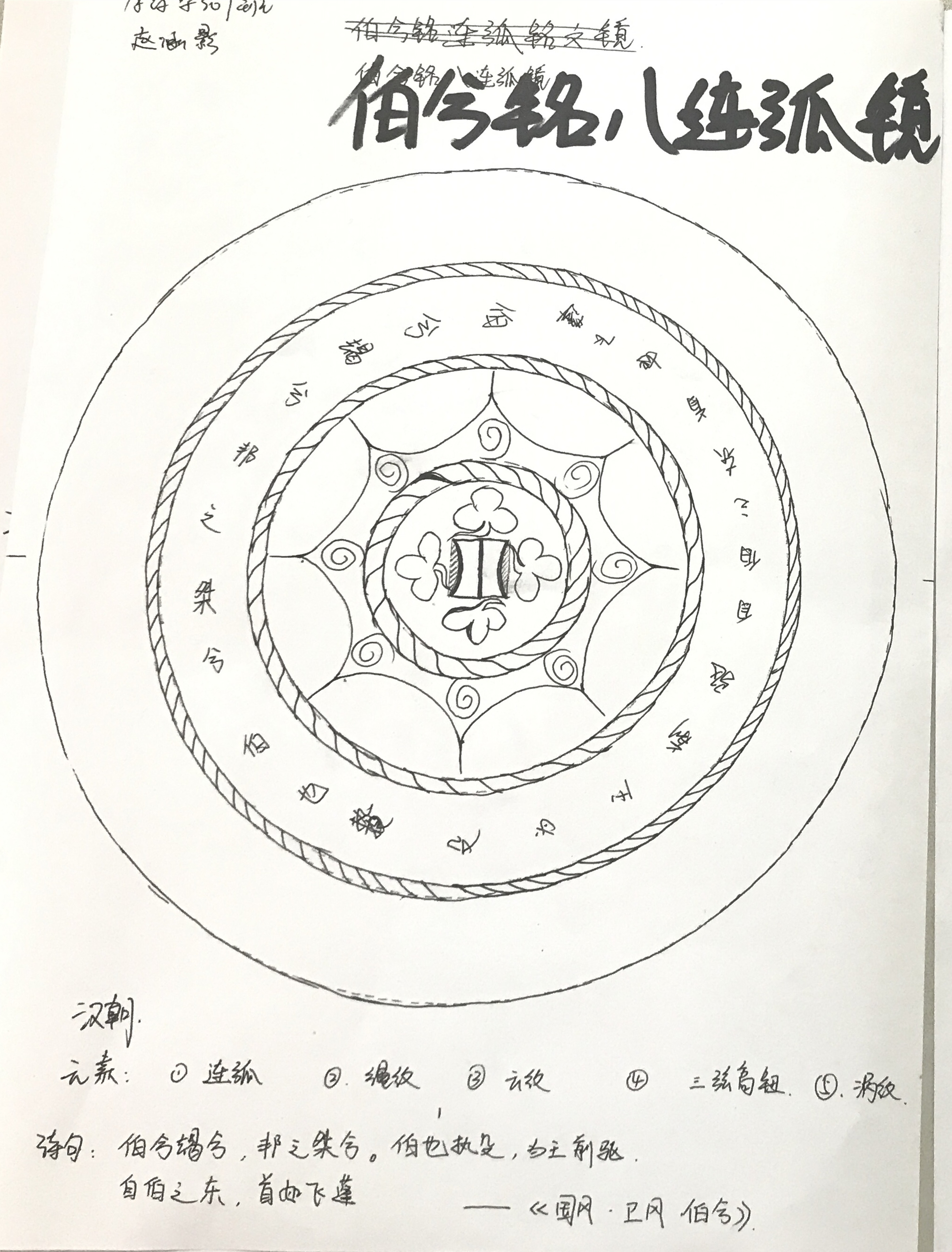 現(xiàn)場最優(yōu)秀的手繪作品出自18藥學(xué)307趙涵影同學(xué),她的作品不僅完全符合漢代鏡背“相思銘文”和“紋飾繁復(fù)”的特色,還將使用到的每一種鏡背元素逐一列出注釋。本次活動使讀者們增進(jìn)了對古銅鏡的了解,提高了對博物館中傳統(tǒng)文化的向往與好奇,有利于推進(jìn)校園文化建設(shè)。