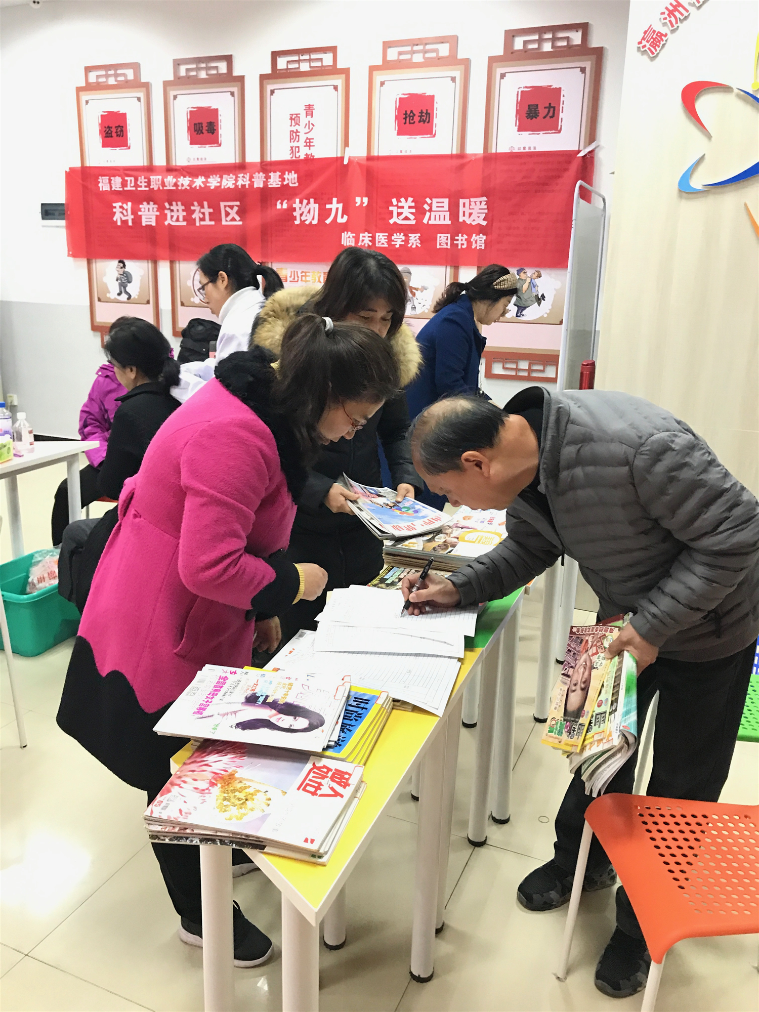 2019年3月5日,在我國傳統(tǒng)節(jié)日“拗九節(jié)”來臨之際,我院臨床醫(yī)學(xué)系和圖書館攜手閩侯縣科協(xié)一起到閩侯縣瀛洲社區(qū),開展“科普進(jìn)社區(qū),‘拗九’送溫暖”學(xué)雷鋒志愿服務(wù)活動(dòng)。