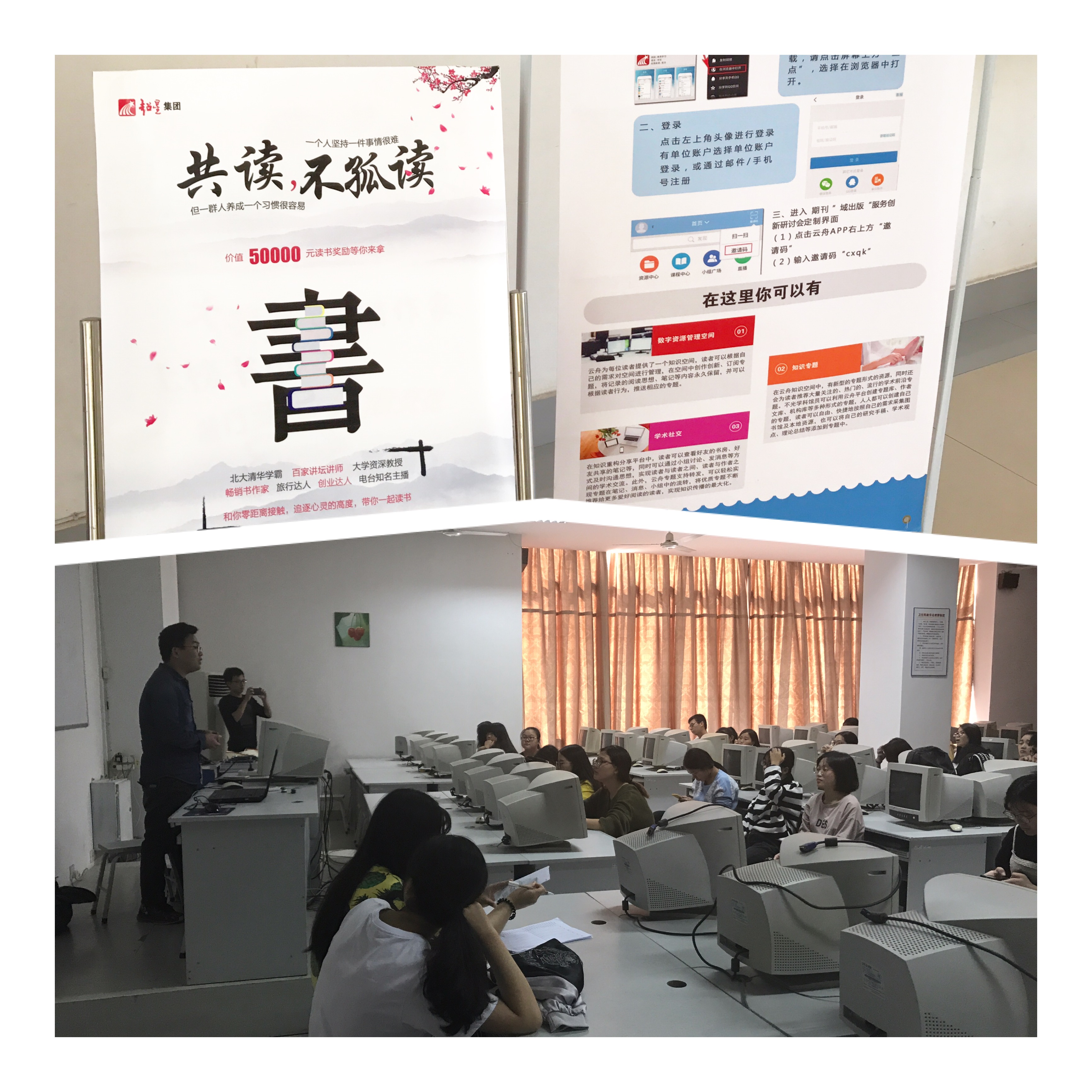 2017年11月2日下午2點(diǎn),來(lái)自超星公司的培訓(xùn)師來(lái)到圖書(shū)館201電子閱覽室,為有興趣參加共讀活動(dòng)的同學(xué)們進(jìn)行了活動(dòng)講解和培訓(xùn)。培訓(xùn)師首先對(duì)此次活動(dòng)的平臺(tái)——學(xué)習(xí)通APP進(jìn)行了介紹,在同學(xué)們學(xué)會(huì)操作后,對(duì)此次活動(dòng)的內(nèi)容和規(guī)則進(jìn)行了詳細(xì)的講解,同學(xué)們?cè)诂F(xiàn)場(chǎng)進(jìn)行了操作,并且順利登錄報(bào)名加入了共讀小組,現(xiàn)場(chǎng)氣氛熱烈,大家紛紛表示將積極參與這次共讀活動(dòng)。