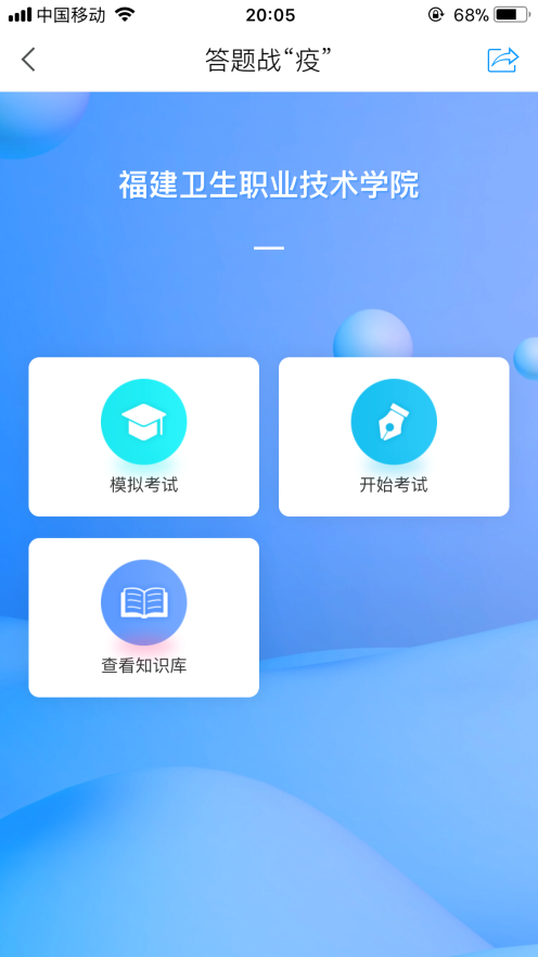 答題戰(zhàn)“疫”微應(yīng)用基于國內(nèi)各官方科普站點的最新新冠病毒研究成果和實時資訊以及學(xué)院對疫情防控的工作要求和措施,整理并上線一百余道防疫科普知識題目。讀者可使用超星學(xué)習(xí)通APP,通過“查看知識庫”了解和學(xué)習(xí)競賽內(nèi)容,通過“模擬考試”熟悉考題,并點擊“開始考試”正式參加在線新冠病毒科普知識競賽。