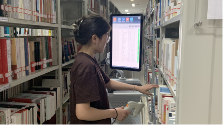 參加決賽的勤工學(xué)生館員在使用RFID系統(tǒng)定位圖書