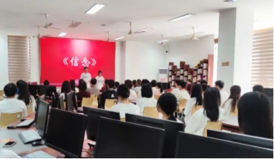“這是一聲砸向舊世界的錘頭撞擊,合著十月革命驚天霹靂!”圖書(shū)館二樓電子閱覽室里傳出了慷慨激昂的青春呼聲,學(xué)生朗誦《信念》,拉開(kāi)了主題黨日活動(dòng)的序幕。同學(xué)們聲情并茂的演繹,向師生黨員們講述著中國(guó)共產(chǎn)黨人征途漫漫的信仰之旅,將不同時(shí)期的中國(guó)故事通過(guò)朗誦傳遞給每位師生黨員,激發(fā)師生黨員們的民族自豪感和自信心。
