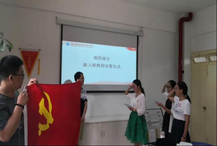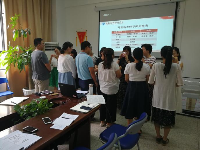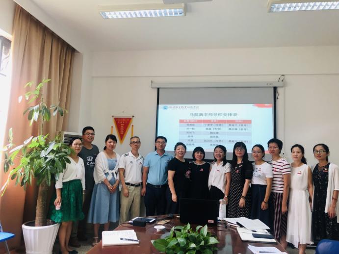隨后,馬院全體教師在師德承諾書做出了鄭重的許諾,新入職教師面對(duì)黨旗進(jìn)行了莊嚴(yán)的宣誓。為促進(jìn)新教師更好成長,馬院精心遴選了教學(xué)和科研工作經(jīng)驗(yàn)豐富的教師作為導(dǎo)師幫扶指導(dǎo)新教師,現(xiàn)場(chǎng)舉行了簡單而隆重的拜師儀式,致力完成1年內(nèi)的“5個(gè)一”成長計(jì)劃,即至少精上一門主干課、聽一門課、開一次馬院公開課、參與一項(xiàng)課題、撰寫一篇工作心得;3年內(nèi)至少完成“5個(gè)一”成長計(jì)劃,即講好一門主干課、發(fā)表一篇C刊論文、作為主要完成人完成一項(xiàng)課題、參加一次校級(jí)及以上教學(xué)比賽、進(jìn)行一次學(xué)術(shù)交流,充分發(fā)揮成長導(dǎo)師的傳幫帶作用,全方位引領(lǐng)和幫助新上崗教師成長。隨后,根據(jù)黨和國家對(duì)思想政治理論課教師的要求,與會(huì)人員對(duì)我院思政課教師宣誓詞(征求意見稿)進(jìn)行熱烈探討。