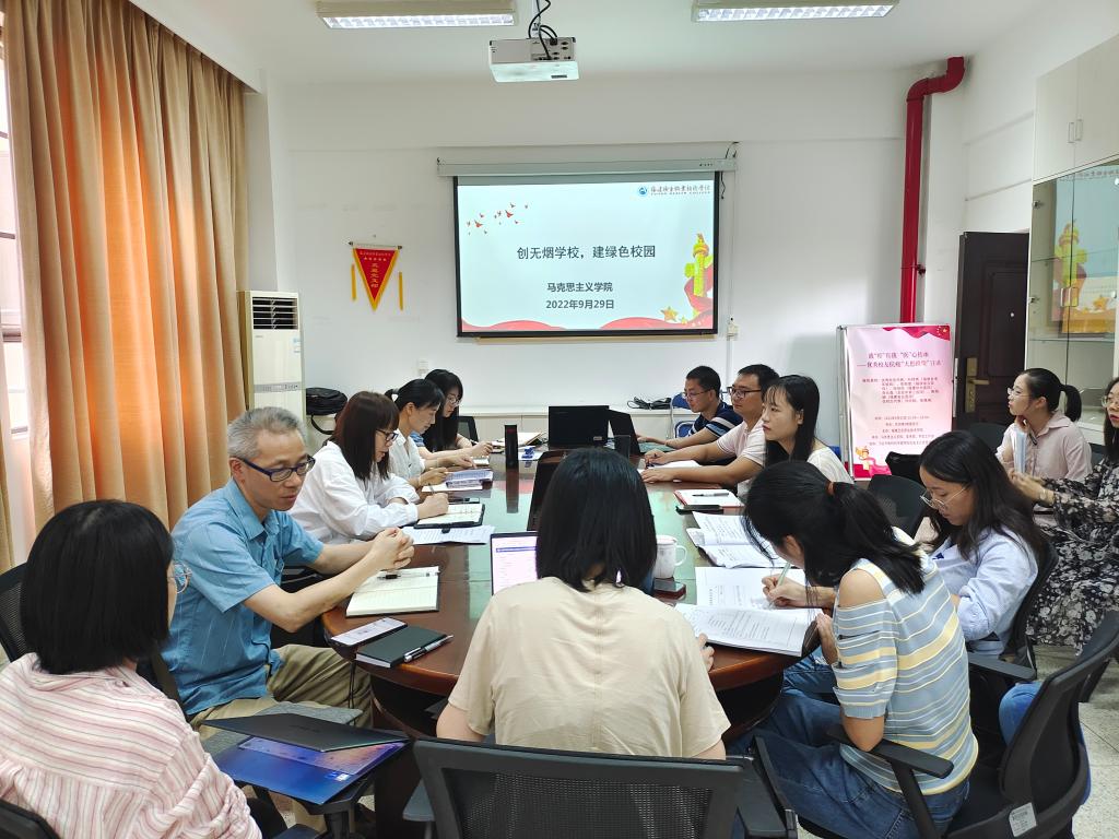 為進(jìn)一步鞏固學(xué)校良好形象,提高學(xué)校文明衛(wèi)生管理水平,保障師生健康,共同創(chuàng)造文明、潔凈、優(yōu)美的校園環(huán)境,加強(qiáng)教職工對吸煙危害的了解,積極推進(jìn)無煙校園創(chuàng)建工作。2022年9月29日上午,馬克思主義學(xué)院開展禁煙學(xué)習(xí)宣傳活動。